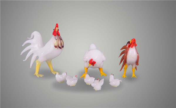 作者:邢兰香,北京民间工艺美术大师;中国高级工艺美术师;国家级非物质文化遗产传承人;是中国目前唯一获得大师称号的料器艺术家。这是一组玻璃灯工作品,鸡、鸭、天鹅是人们熟悉的动物,作者巧妙地抓住动物在大自然中生活、嬉戏的某个姿态,艺术再现了动物的天真可爱,充满自然地童趣。 |