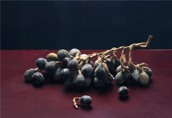 最大径1.82厘米、长2.15厘米;最小径1.3厘米 长1.4厘米。一九六九年七月河北省定县五号塔基出土,河北省定县博物馆藏。葡萄粒大小不一,有圆形、椭圆形。腹壁极薄,中空。颜色以棕色为多,白色和绿色的较少,均半透明。玻璃料质略显不纯,杂有白色的旋状纹,表面有黄色锈蚀斑塊。玻璃葡萄经同位素X射线荧光分析,其硅和铅的含量偏高,钙、钾的含量较低。葡萄的制作工艺为无模吹制法,从吹管上剪下即成。定县五号塔始建於北魏,后经隋、唐、北宋几次重建,最后一次建於北宋太平兴国二年(公元九七七年),定名[静志寺真身舍利塔]。塔基中出土宋代玻璃器十分丰富,充分显示出北宋时期玻璃制造业的发展。塔基中还出有若干件伊斯兰风格的玻璃器皿,反映了当时我国与外域的物质文化交流。是国家二级文物。定州博物馆借展。 |