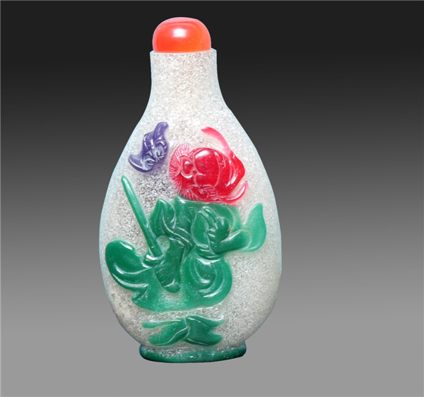 白套五彩料玻璃鼻烟壶 清(公元1644年—公元1911年)