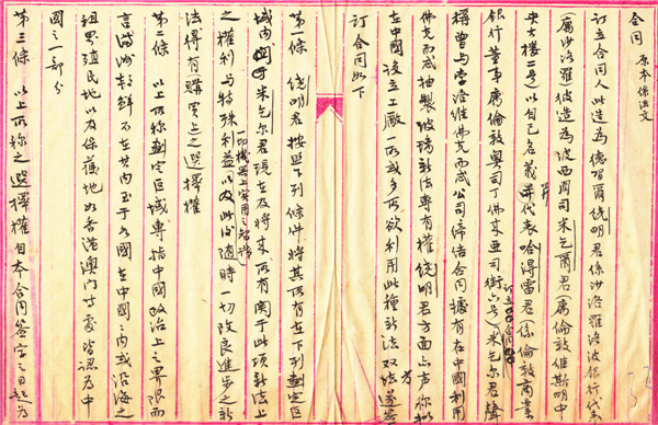 1920年5月11日,饶明与米乞尔签订的关于在中国利用佛克法专有权的合同