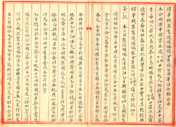 1921年12月22日李伯芝等发起人与秦皇岛玻璃 公司代表华洋合股合同